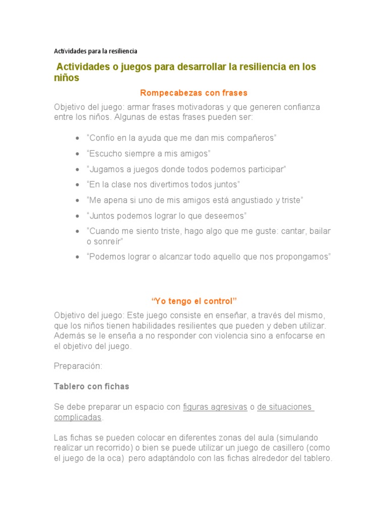 Juegos De Resiliencia Para Niños